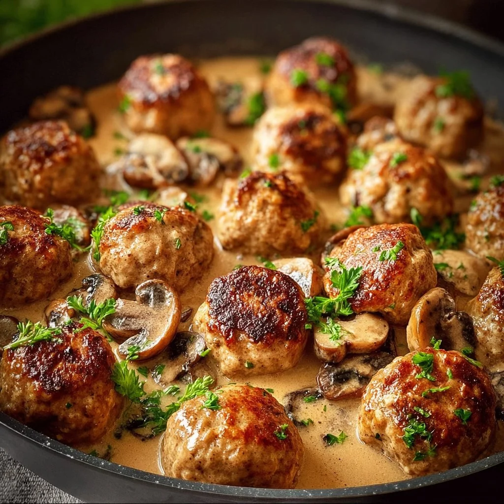 This dish is simple, creamy, and full of flavor. The meatballs stay soft and the mushroom sauce is rich. It is quick to make and works for weeknights or guests.