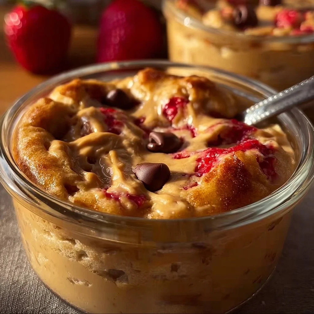 A quick, single-serve baked pancake bowl that is high in protein and ready in under 30 minutes.