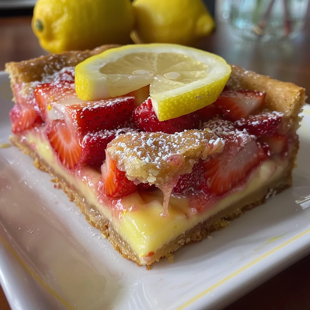 Crunchy crust layered with zesty lemon-strawberry filling and powdered sugar. Perfect for picnics or tea, these bars balance tart and sweet flavors with a buttery, fresh finish.